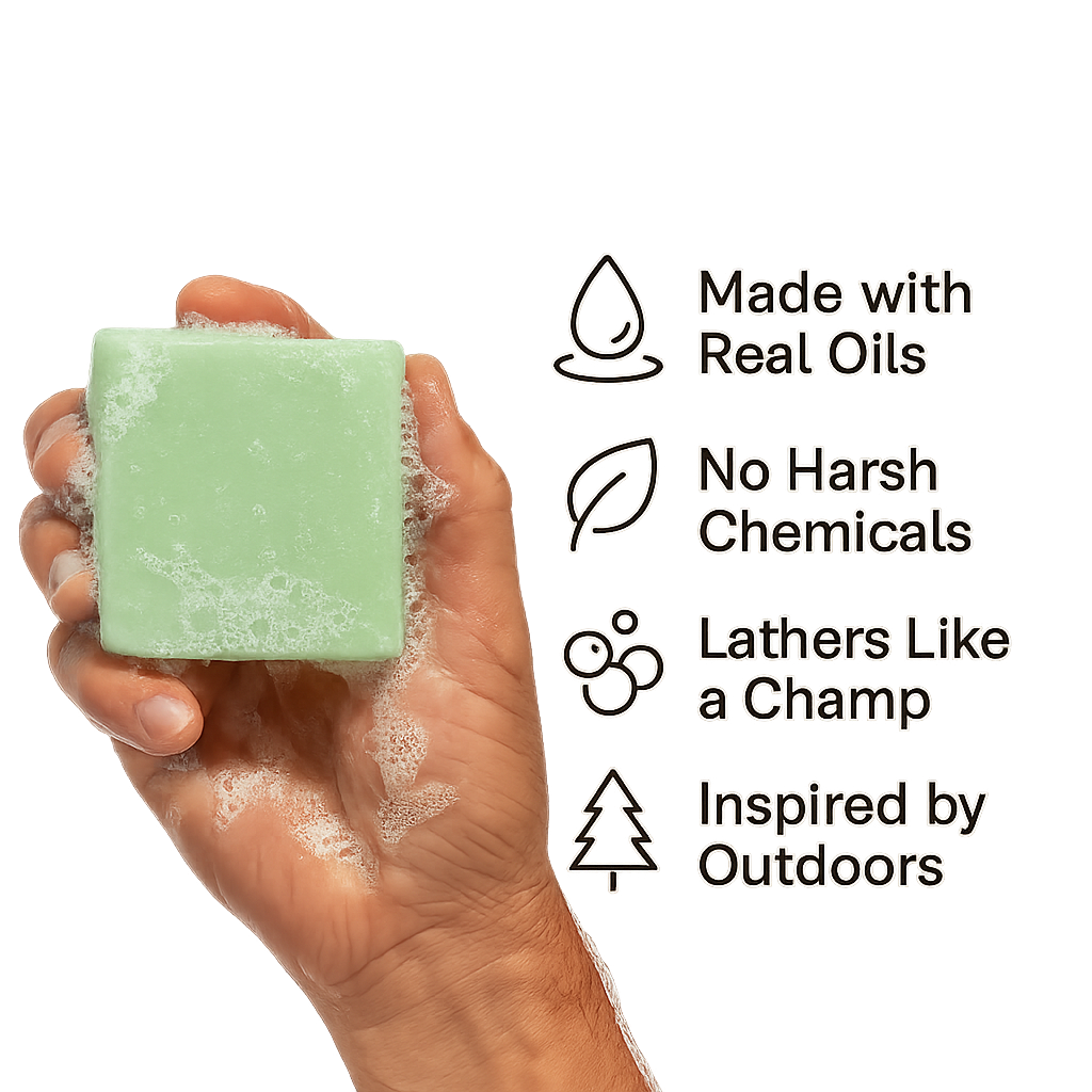 Elevate your routine with our cold-process soap, handcrafted in the USA using nature’s finest. Packed with skin-loving ingredients like Coconut Oil, Shea Butter, and Skin-loving Goats Milk, each bar delivers a rich lather and rugged scent that works as hard as you do.